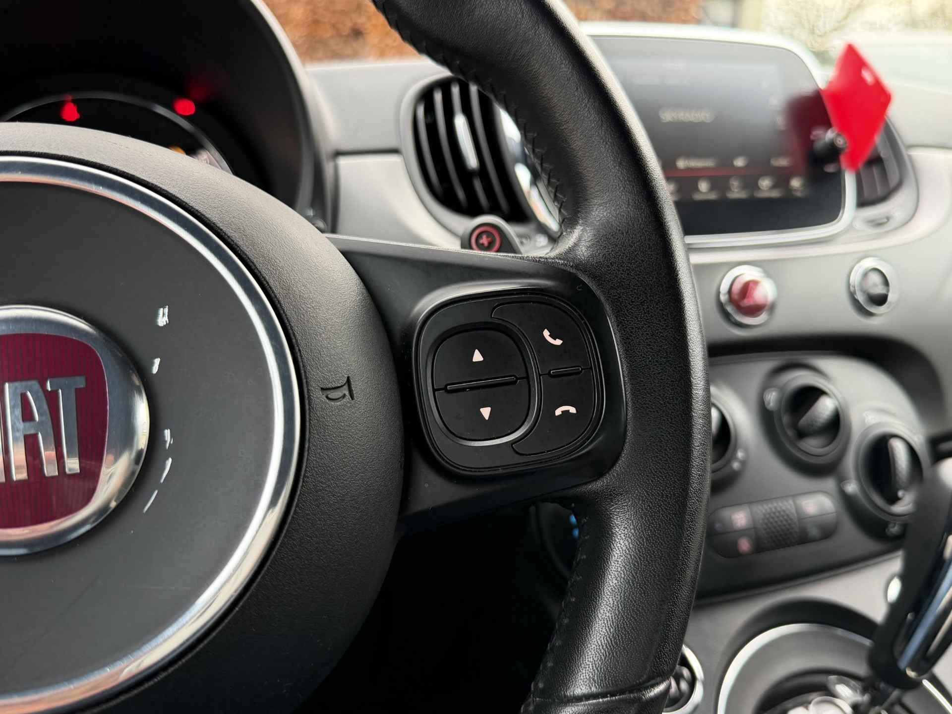U kunt tijdens de rit uw ogen steeds op de weg houden, want het audiosysteem (met dab!) en het navigatiesysteem kunt u bedienen vanaf het stuur. Parkeersensoren helpen u tijdens het in- en uitparkeren. De cruise control betekent gemak, comfort en zuinig rijden. In de zomer zorgt de airconditioning voor verkoeling. In het voorjaar en najaar voorkomt het systeem beslagen ramen. Met sportstuur met schakelpaddels, automatisch dimmende binnenspiegel en centrale deurvergrendeling met afstandsbediening is deze Fiat helemaal compleet.
