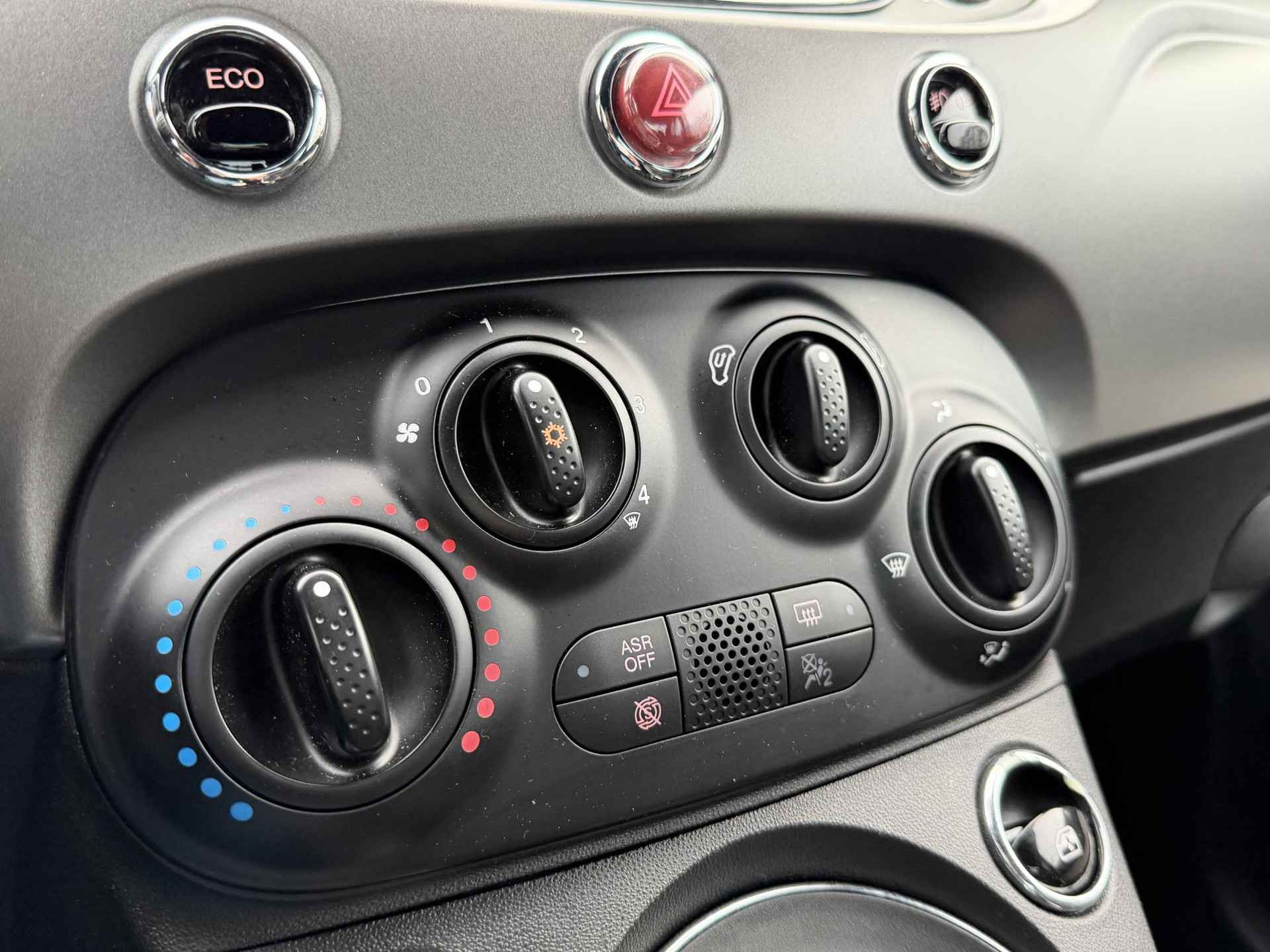 Zoals u mag verwachten van deze Fiat 500 is hij uitgerust met een reeks aan actieve veiligheidssystemen. Brake assist verhoogt de remdruk in een noodsituatie zodat u sneller stil staat.